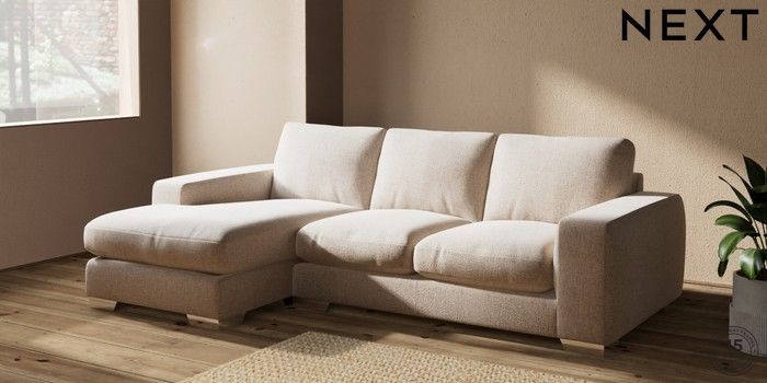 7.2.6 Buy Houghton Deep Relaxed Sit Medium Sofa Chaise - Left Hand Multi Weave Mid Natural Large Square Angle - Chrome Metal from the Laura Ashley online shop Click here to use our website with more accessibility support, for example screen readers