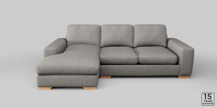 6.12.1 Buy Houghton Deep Relaxed Sit Medium Sofa Chaise - Left Hand Tweedy Chenille Mid Grey Large Square Angle - Light from the Laura Ashley online shop Click here to use our website with more accessibility support, for example screen readers