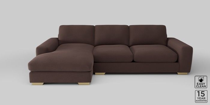 6.12.1 Buy Houghton Deep Relaxed Sit Sofa Chaise Bed - Left Hand Fine Chenille Easy Clean Chocolate Brown Large Square Angle - Brushed Brass from the Laura Ashley online shop Click here to use our website with more accessibility support, for example screen readers