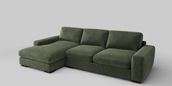 6.12.1 Buy Houghton Deep Relaxed Sit Sofa Chaise Bed - Left Hand Luxe Chenille Mid Green Large Square Angle - Dark from the Laura Ashley online shop Click here to use our website with more accessibility support, for example screen readers