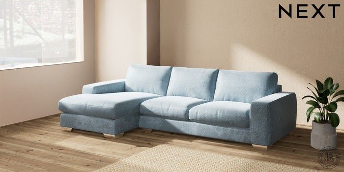 7.2.6 Buy Houghton Deep Relaxed Sit Sofa Chaise Bed - Left Hand Plush Chenille Light Blue Large Square Angle - Chrome Metal from the Laura Ashley online shop Click here to use our website with more accessibility support, for example screen readers