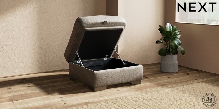 7.0.3 Buy Houghton Deep Relaxed Sit Storage Footstool Cotswold Chenille Mid Mink Brown Square Angle - Gunmetal from the Laura Ashley online shop Click here to use our website with more accessibility support, for example screen readers