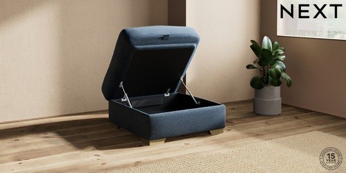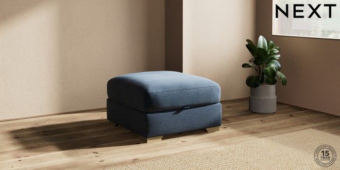 7.0.3 Buy Houghton Deep Relaxed Sit Storage Footstool Ripple Chenille Dark Blue Square Angle - Light from the Laura Ashley online shop Click here to use our website with more accessibility support, for example screen readers