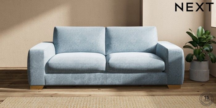 7.2.6 Buy Houghton Deep Sit 3 Seater Sofa Plush Chenille Light Blue Large Square Angle - Brushed Brass from the Laura Ashley online shop Click here to use our website with more accessibility support, for example screen readers