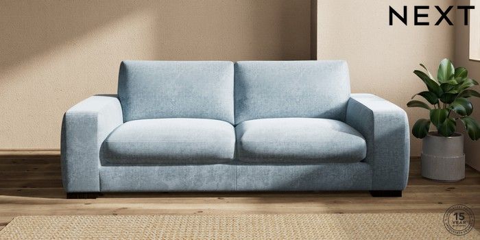 7.2.6 Buy Houghton Deep Sit 3 Seater Sofa Plush Chenille Light Blue Large Square Angle - Dark from the Laura Ashley online shop Click here to use our website with more accessibility support, for example screen readers