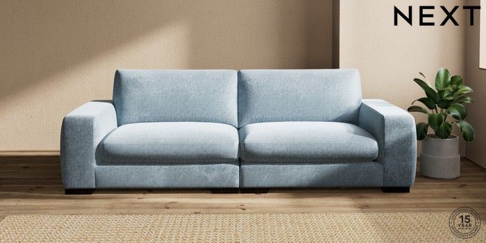7.2.6 Buy Houghton Deep Sit 4 Seater Sofa Plush Chenille Light Blue Large Square Angle - Dark from the Laura Ashley online shop Click here to use our website with more accessibility support, for example screen readers