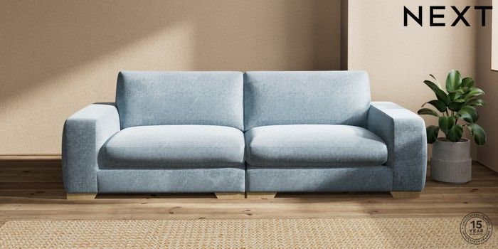 7.2.6 Buy Houghton Deep Sit 4 Seater Sofa Plush Chenille Light Blue Large Square Angle - Light from the Laura Ashley online shop Click here to use our website with more accessibility support, for example screen readers