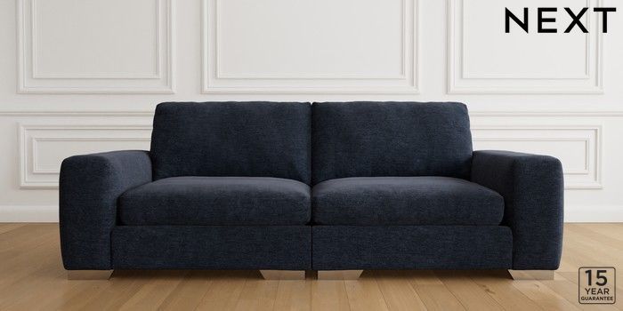 6.12.1 Buy Houghton Deep Sit 2 Seater Small Sofa Distressed Velour Midnight Blue Large Square Angle - Chrome Metal from the Laura Ashley online shop Click here to use our website with more accessibility support, for example screen readers