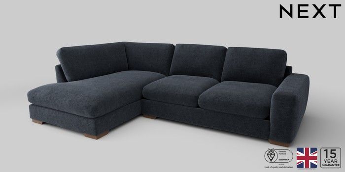 6.12.1 Buy Houghton Deep Sit Large Corner Chaise - Left Hand Boucle Chenille Dark Slate Blue Large Square Angle - Mid from the Laura Ashley online shop Click here to use our website with more accessibility support, for example screen readers