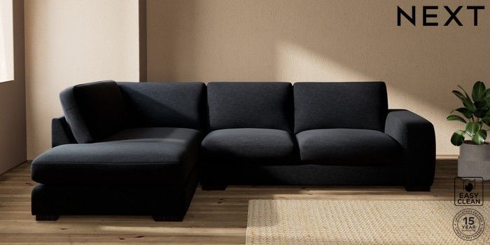 7.2.5 Buy Houghton Deep Sit Large Corner Chaise - Left Hand Fine Chenille Easy Clean Black Large Square Angle - Dark from the Laura Ashley online shop Click here to use our website with more accessibility support, for example screen readers