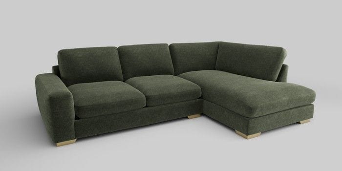 6.12.1 Buy Houghton Deep Sit Large Corner Chaise - Right Hand Luxe Chenille Mid Green Large Square Angle - Brushed Brass from the Laura Ashley online shop Click here to use our website with more accessibility support, for example screen readers