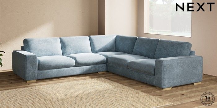 7.2.6 Buy Houghton Deep Sit Large Corner Sofa - Universal Plush Chenille Light Blue Large Square Angle - Light from the Laura Ashley online shop Click here to use our website with more accessibility support, for example screen readers