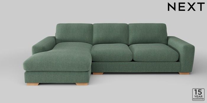 6.12.1 Buy Houghton Deep Sit Large Sofa Chaise - Left Hand Chunky Texture Mid Forest Green Large Square Angle - Light from the Laura Ashley online shop Click here to use our website with more accessibility support, for example screen readers