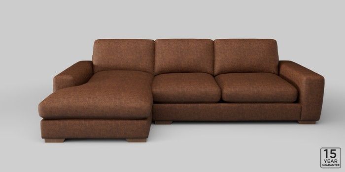 6.12.1 Buy Houghton Deep Sit Large Sofa Chaise - Left Hand Monza Faux Leather Easy Clean Chestnut Brown Large Square Angle - Mid from the Laura Ashley online shop Click here to use our website with more accessibility support, for example screen readers