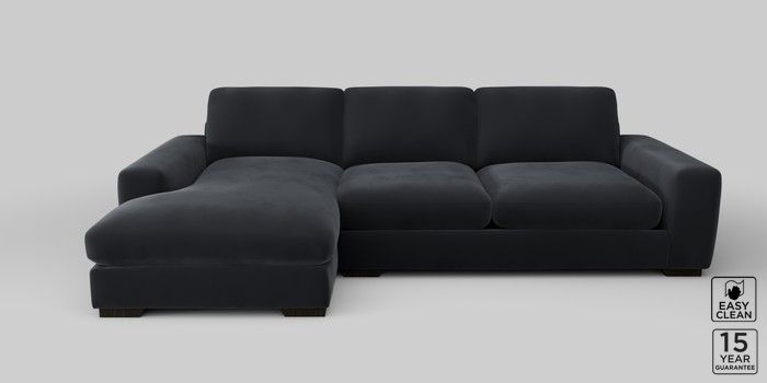 6.12.1 Buy Houghton Deep Sit Large Sofa Chaise - Left Hand Plush Velvet Easy Clean Charcoal Grey Large Square Angle - Dark from the Laura Ashley online shop Click here to use our website with more accessibility support, for example screen readers