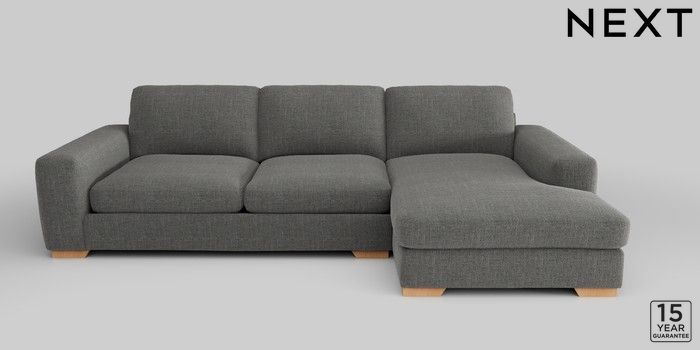 6.12.1 Buy Houghton Deep Sit Large Sofa Chaise - Right Hand Chunky Texture Dark Grey Large Square Angle - Light from the Laura Ashley online shop Click here to use our website with more accessibility support, for example screen readers