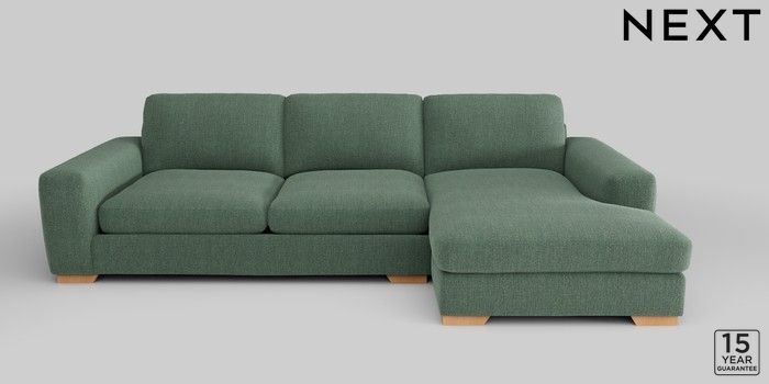 6.12.13 Buy Houghton Deep Sit Large Sofa Chaise - Right Hand Chunky Texture Mid Forest Green Large Square Angle - Light from the Laura Ashley online shop Click here to use our website with more accessibility support, for example screen readers