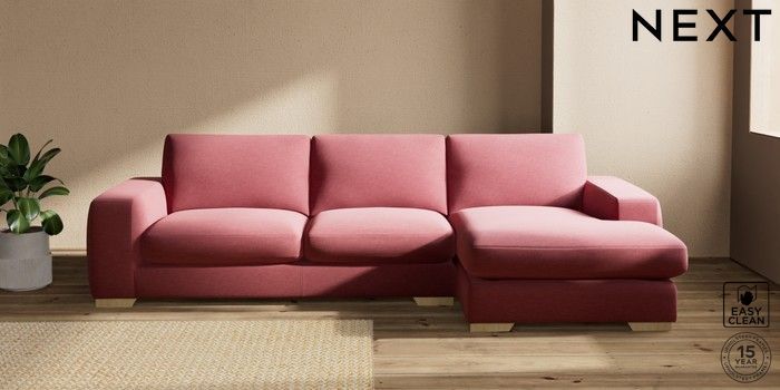 7.2.5 Buy Houghton Deep Sit Large Sofa Chaise - Right Hand Fine Chenille Easy Clean Mid Pink Large Square Angle - Light from the Laura Ashley online shop Click here to use our website with more accessibility support, for example screen readers