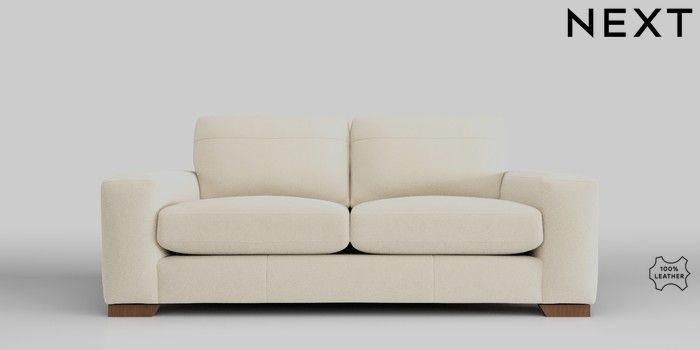 6.11.8 Buy Houghton Leather Deep Sit 3 Seater Small Sofa Turin Leather Cream Large Square Angle - Mid from the Laura Ashley online shop Click here to use our website with more accessibility support, for example screen readers