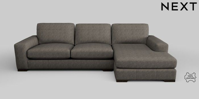 7.2.5 Buy Houghton Leather Deep Sit Large Sofa Chaise - Right Hand Antiqued Leather Grey Large Square Angle - Dark from the Laura Ashley online shop Click here to use our website with more accessibility support, for example screen readers