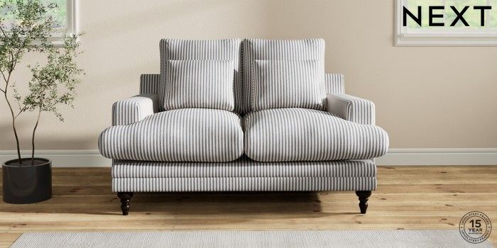 6.12.1 Buy Hutton Deep Relaxed Sit 2 Seater Sofa Chenille Stripe Slate Blue Country Turned - Dark from the Laura Ashley online shop Click here to use our website with more accessibility support, for example screen readers