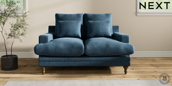 6.12.1 Buy Hutton Deep Relaxed Sit 2 Seater Sofa Cotswold Chenille Dark Blue Country Turned - Mid from the Laura Ashley online shop Click here to use our website with more accessibility support, for example screen readers