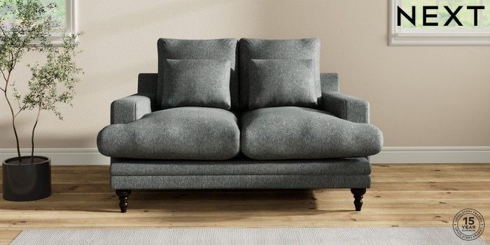 6.12.1 Buy Hutton Deep Relaxed Sit 2 Seater Sofa Cotswold Chenille Dark Grey Country Turned - Dark from the Laura Ashley online shop Click here to use our website with more accessibility support, for example screen readers