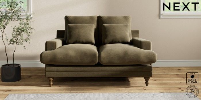 6.12.1 Buy Hutton Deep Relaxed Sit 2 Seater Sofa Fine Chenille Easy Clean Dark Moss Green Country Turned - Mid from the Laura Ashley online shop Click here to use our website with more accessibility support, for example screen readers