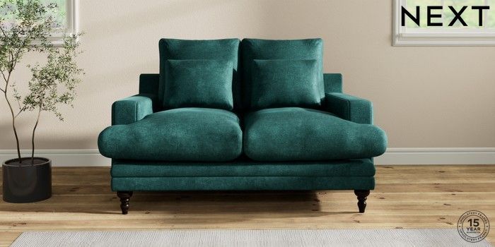 6.12.1 Buy Hutton Deep Relaxed Sit 2 Seater Sofa Plush Chenille Dark Teal Green Country Turned - Dark from the Laura Ashley online shop Click here to use our website with more accessibility support, for example screen readers