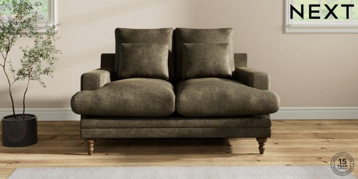 6.12.1 Buy Hutton Deep Relaxed Sit 2 Seater Sofa Plush Chenille Moss Green Country Turned - Mid from the Laura Ashley online shop Click here to use our website with more accessibility support, for example screen readers
