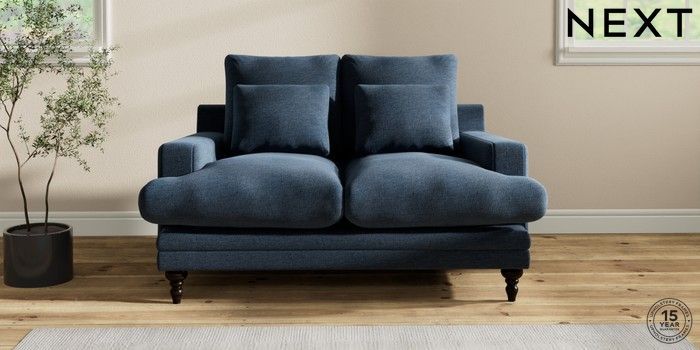 6.12.1 Buy Hutton Deep Relaxed Sit 2 Seater Sofa Ripple Chenille Dark Blue Country Turned - Dark from the Laura Ashley online shop Click here to use our website with more accessibility support, for example screen readers