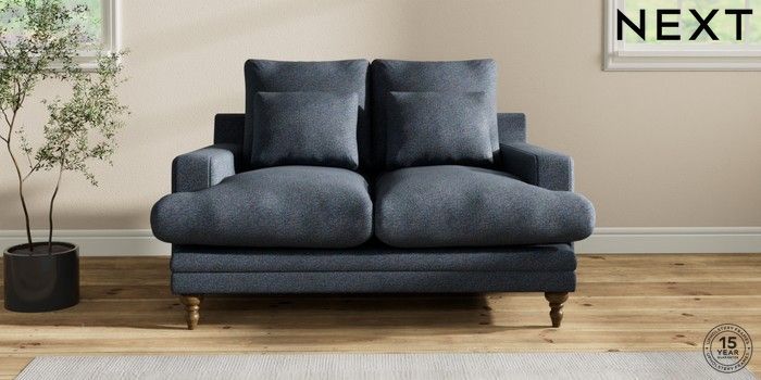 6.12.1 Buy Hutton Deep Relaxed Sit 2 Seater Sofa Tweedy Chenille Navy Blue Country Turned - Mid from the Laura Ashley online shop Click here to use our website with more accessibility support, for example screen readers