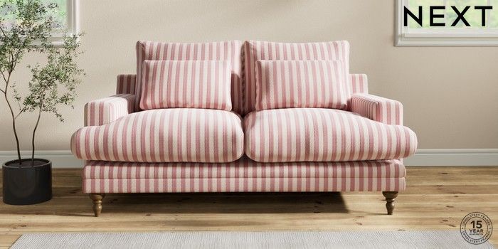 6.12.1 Buy Hutton Deep Relaxed Sit 3 Seater Small Sofa Bold Chenille Stripe Dark Pink Country Turned - Mid from the Laura Ashley online shop Click here to use our website with more accessibility support, for example screen readers