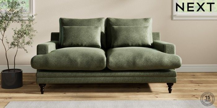 6.12.1 Buy Hutton Deep Relaxed Sit 3 Seater Small Sofa Boucle Chenille Dark Moss Green Country Turned - Dark from the Laura Ashley online shop Click here to use our website with more accessibility support, for example screen readers