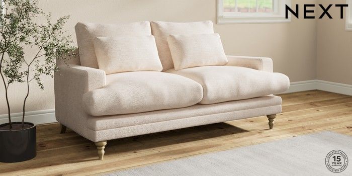 7.0.3 Buy Hutton Deep Relaxed Sit 3 Seater Small Sofa Boucle Chenille Oyster Country Turned - Light from the Laura Ashley online shop Click here to use our website with more accessibility support, for example screen readers