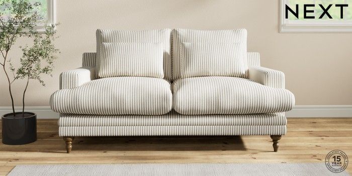 6.12.1 Buy Hutton Deep Relaxed Sit 3 Seater Small Sofa Chenille Stripe Moss Green Country Turned - Mid from the Laura Ashley online shop Click here to use our website with more accessibility support, for example screen readers