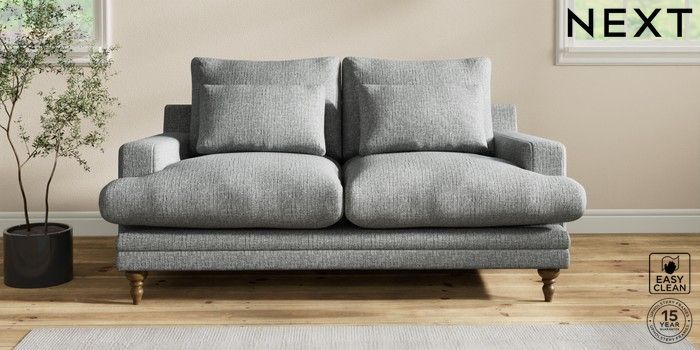 6.12.1 Buy Hutton Deep Relaxed Sit 3 Seater Small Sofa Chunky Boucle Easy Clean Mid Grey Country Turned - Mid from the Laura Ashley online shop Click here to use our website with more accessibility support, for example screen readers