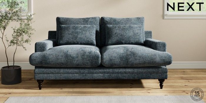 6.12.1 Buy Hutton Deep Relaxed Sit 3 Seater Small Sofa Chunky Chenille Dark Navy Blue Country Turned - Dark from the Laura Ashley online shop Click here to use our website with more accessibility support, for example screen readers