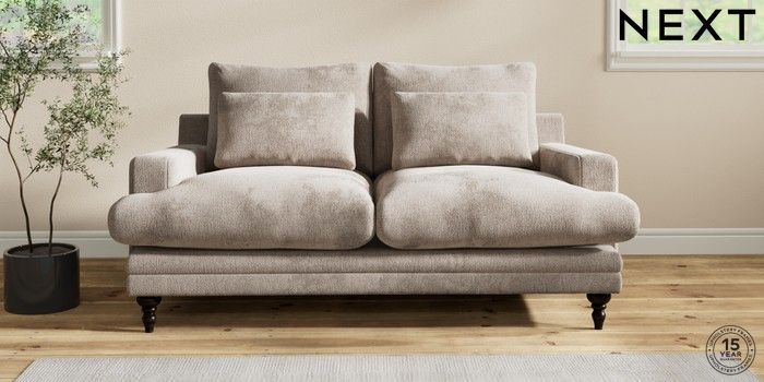 6.12.1 Buy Hutton Deep Relaxed Sit 3 Seater Small Sofa Chunky Chenille Light Dove Country Turned - Dark from the Laura Ashley online shop Click here to use our website with more accessibility support, for example screen readers