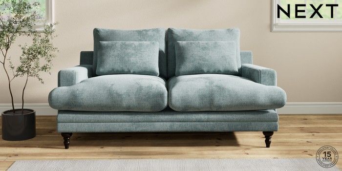 6.12.1 Buy Hutton Deep Relaxed Sit 3 Seater Small Sofa Chunky Chenille Light Teal Green Country Turned - Dark from the Laura Ashley online shop Click here to use our website with more accessibility support, for example screen readers