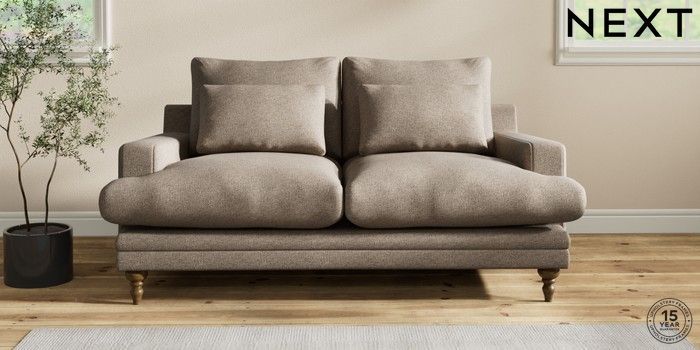 6.12.1 Buy Hutton Deep Relaxed Sit 3 Seater Small Sofa Chunky Weave Dark Natural Country Turned - Mid from the Laura Ashley online shop Click here to use our website with more accessibility support, for example screen readers