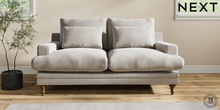 6.12.1 Buy Hutton Deep Relaxed Sit 3 Seater Small Sofa Chunky Weave Dove Grey Country Turned - Mid from the Laura Ashley online shop Click here to use our website with more accessibility support, for example screen readers
