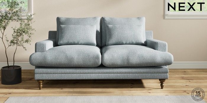 6.12.1 Buy Hutton Deep Relaxed Sit 3 Seater Small Sofa Chunky Weave Mid Blue Country Turned - Mid from the Laura Ashley online shop Click here to use our website with more accessibility support, for example screen readers