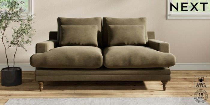 6.12.1 Buy Hutton Deep Relaxed Sit 3 Seater Small Sofa Fine Chenille Easy Clean Dark Moss Green Country Turned - Mid from the Laura Ashley online shop Click here to use our website with more accessibility support, for example screen readers