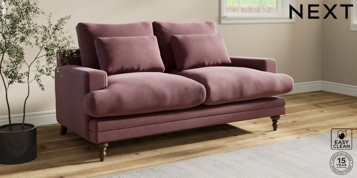 7.0.3 Buy Hutton Deep Relaxed Sit 3 Seater Small Sofa Fine Chenille Easy Clean Mid Mulberry Purple Country Turned - Mid from the Laura Ashley online shop Click here to use our website with more accessibility support, for example screen readers