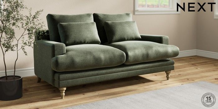 7.0.3 Buy Hutton Deep Relaxed Sit 3 Seater Small Sofa Luxe Chenille Mid Green Country Turned - Light from the Laura Ashley online shop Click here to use our website with more accessibility support, for example screen readers