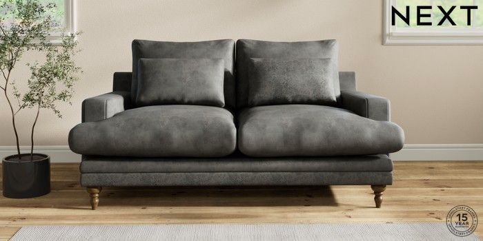 6.12.1 Buy Hutton Deep Relaxed Sit 3 Seater Small Sofa Monza Faux Leather Easy Clean Dark Grey Country Turned - Mid from the Laura Ashley online shop Click here to use our website with more accessibility support, for example screen readers