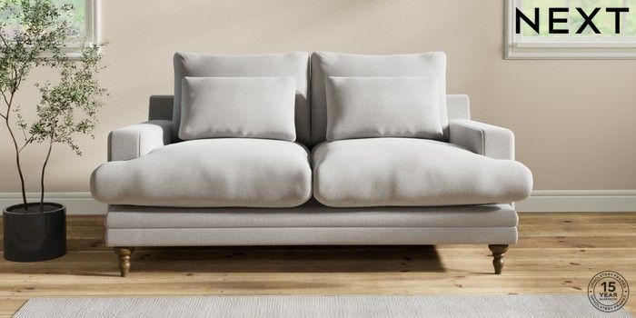 6.12.1 Buy Hutton Deep Relaxed Sit 3 Seater Small Sofa Natural Mix Light Grey Country Turned - Mid from the Laura Ashley online shop Click here to use our website with more accessibility support, for example screen readers