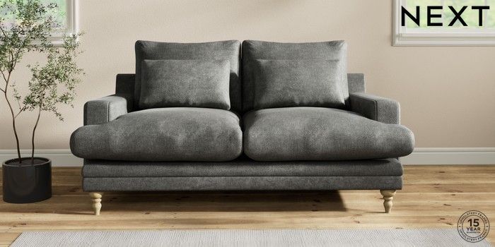 6.12.1 Buy Hutton Deep Relaxed Sit 3 Seater Small Sofa Plush Chenille Dark Grey Country Turned - Light from the Laura Ashley online shop Click here to use our website with more accessibility support, for example screen readers