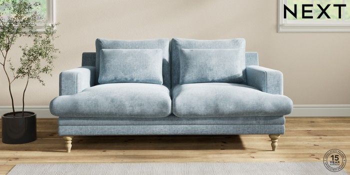 7.2.6 Buy Hutton Deep Relaxed Sit 3 Seater Small Sofa Plush Chenille Light Blue Country Turned - Light from the Laura Ashley online shop Click here to use our website with more accessibility support, for example screen readers